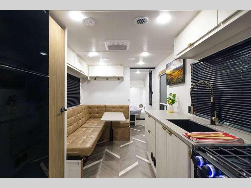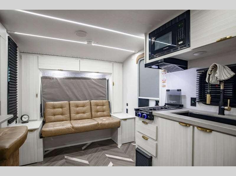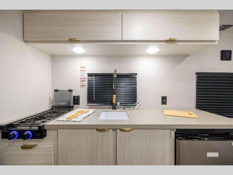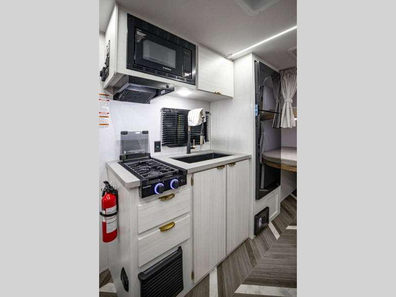 Sleeps 2 Slides 1 Length 26 ft 1 in Ext Width 8 ft Ext Height 11 ft 2 in Hitch Weight 755 lbs GVWR 7755 lbs Dry Weight 5628 lbs Cargo Capacity 2127 lbs Fresh Water Capacity 54 gals Grey Water Capacity 80 gals Black Water Capacity 40 gals Available Beds King Refrigerator Type 12V Cooktop Burners 3 Number of Awnings 1 LP Tank Capacity 20 lbs Water Heater Type On Demand Tankless Awning Info 18' Power w/LED Light Strip Axle Count 2 Shower Type Standard Similar Floorplans