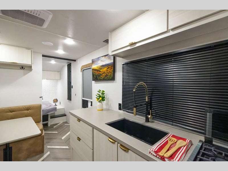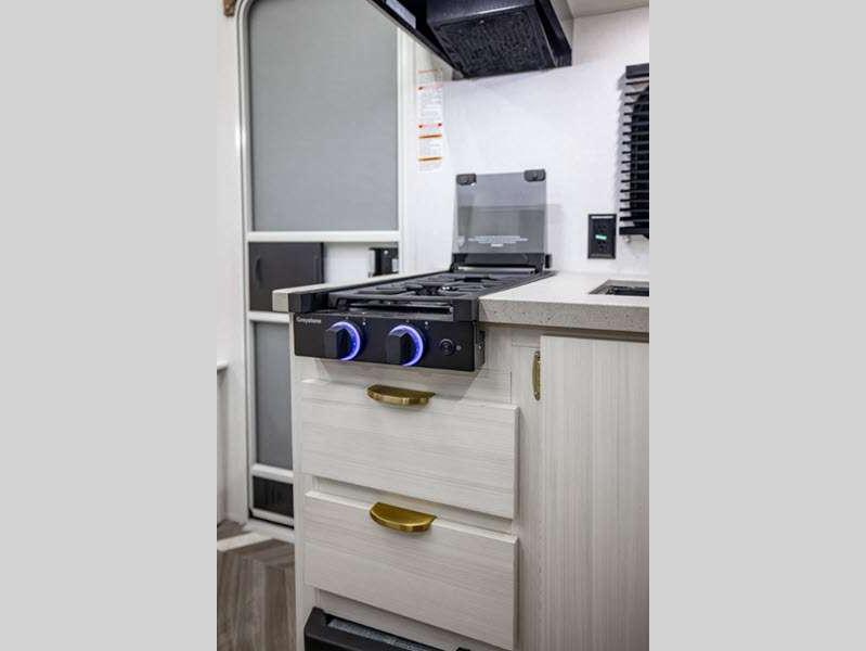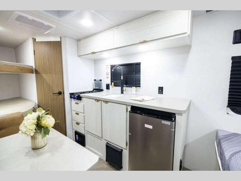 Sleeps 4 Slides 1 Length 23 ft 3 in Ext Width 7 ft 6 in Ext Height 10 ft 6 in Hitch Weight 450 lbs GVWR 5550 lbs Dry Weight 4064 lbs Cargo Capacity 1486 lbs Fresh Water Capacity 39 gals Grey Water Capacity 30 gals Black Water Capacity 30 gals Available Beds Queen Refrigerator Type 12V Cooktop Burners 2 Number of Awnings 1 LP Tank Capacity 20 lbs Water Heater Type On Demand Tankless Awning Info Power w/LED Light Strip Axle Count 1 Number of LP Tanks 1 Shower Type Standard Similar Floorplans